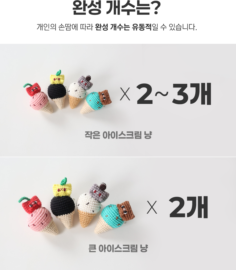 - 뜨개를 할 때 실을 감는 방향 혹은 실이 감겨 있는 방향에 따라 실의 꼬임이 풀릴 수 있으나 이는 불량이 아닙니다.